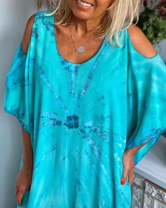 Be the first to review “Tie-Dye Print Cold-Shoulder Loose Maxi Dress(4 Colors)” Cancel reply